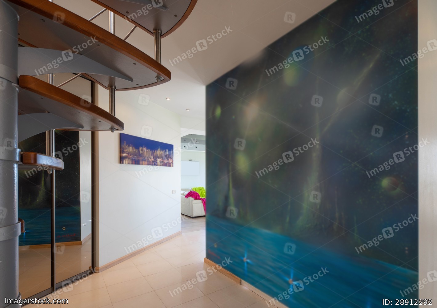 Wall with the image of space in entrance hall of luxury apartment. Private house.