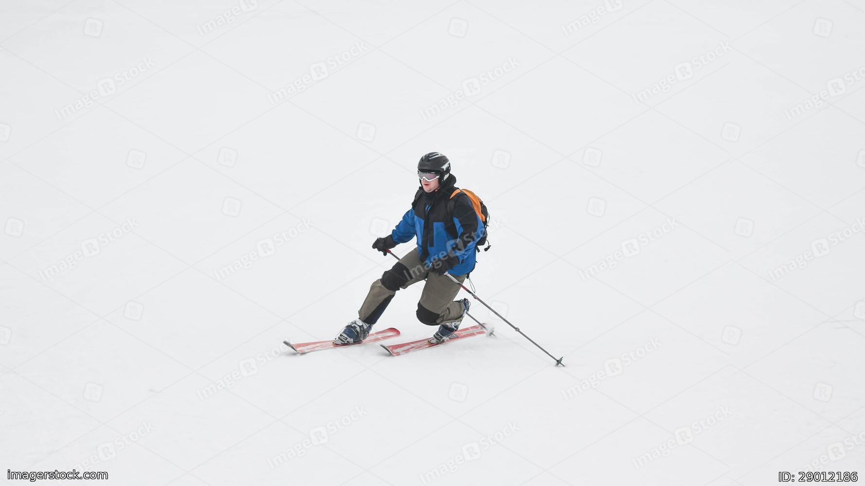 A man goes skiing on a snow-covered ski track. Ski resort. Fast moving. Winter sport.