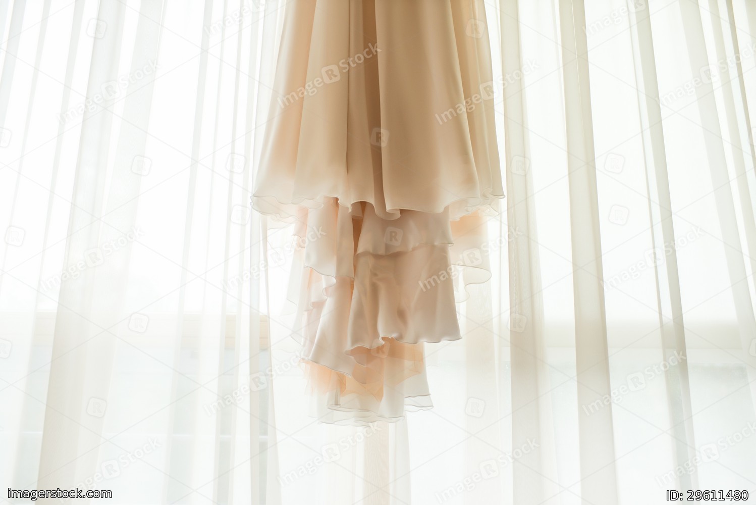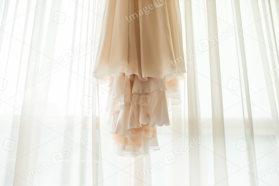 The hem of the chiffon dress. Draped tulle.