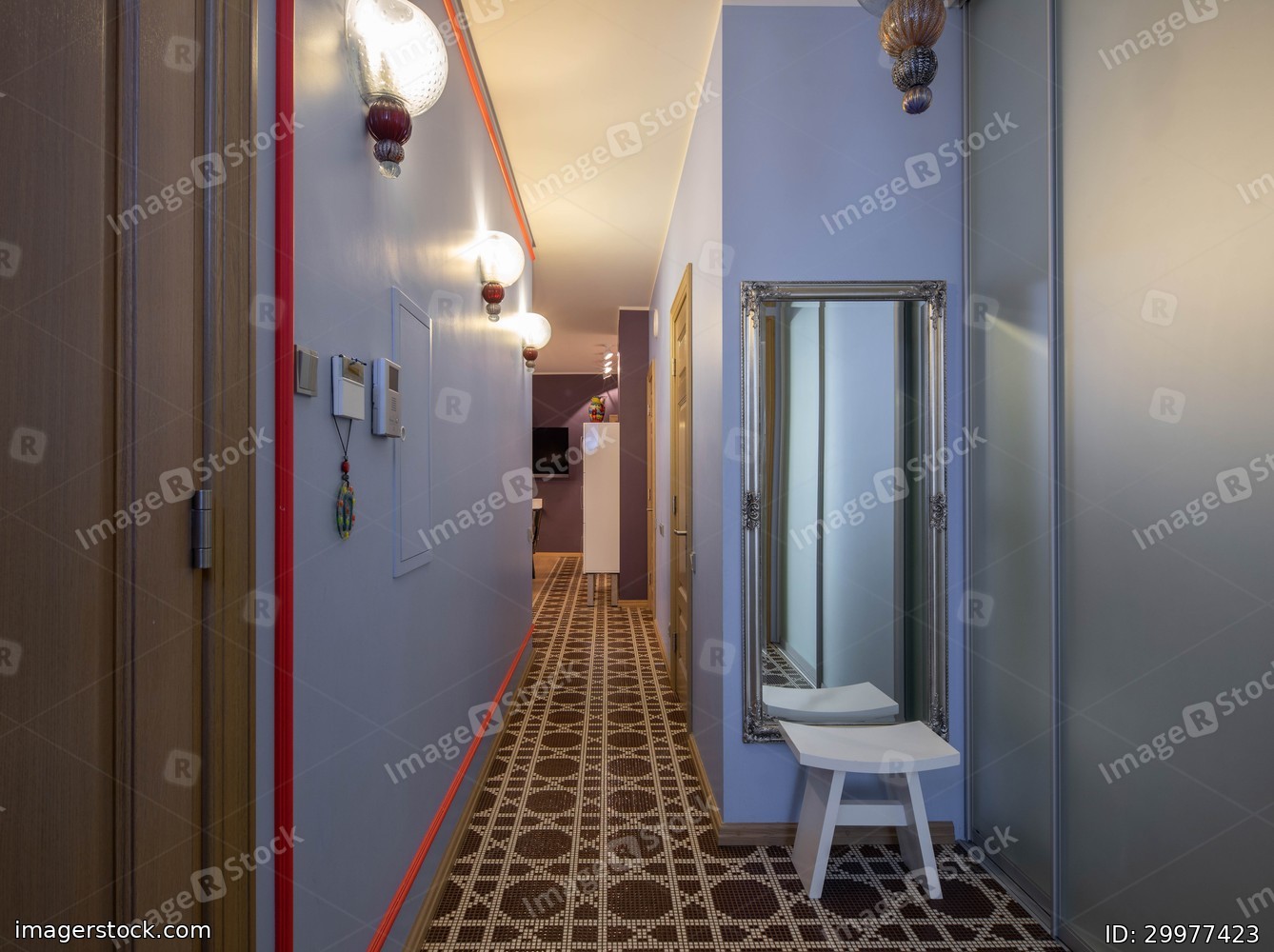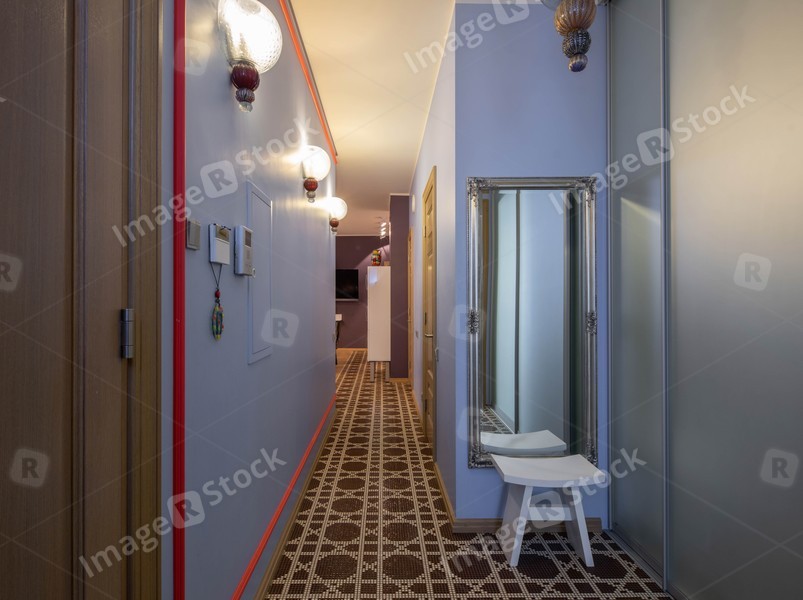 Modern interior of hallway. Wooden doors.