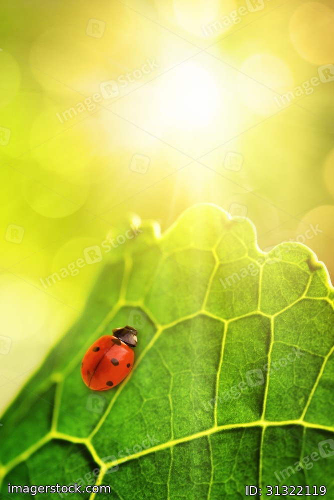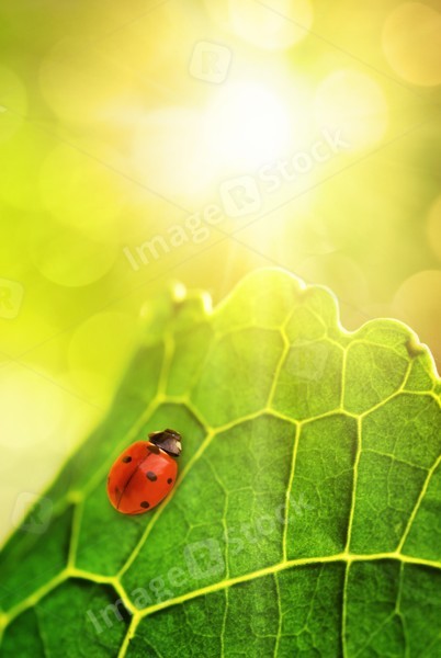 Ladybug sitting on a green leaf (shallow DoF)