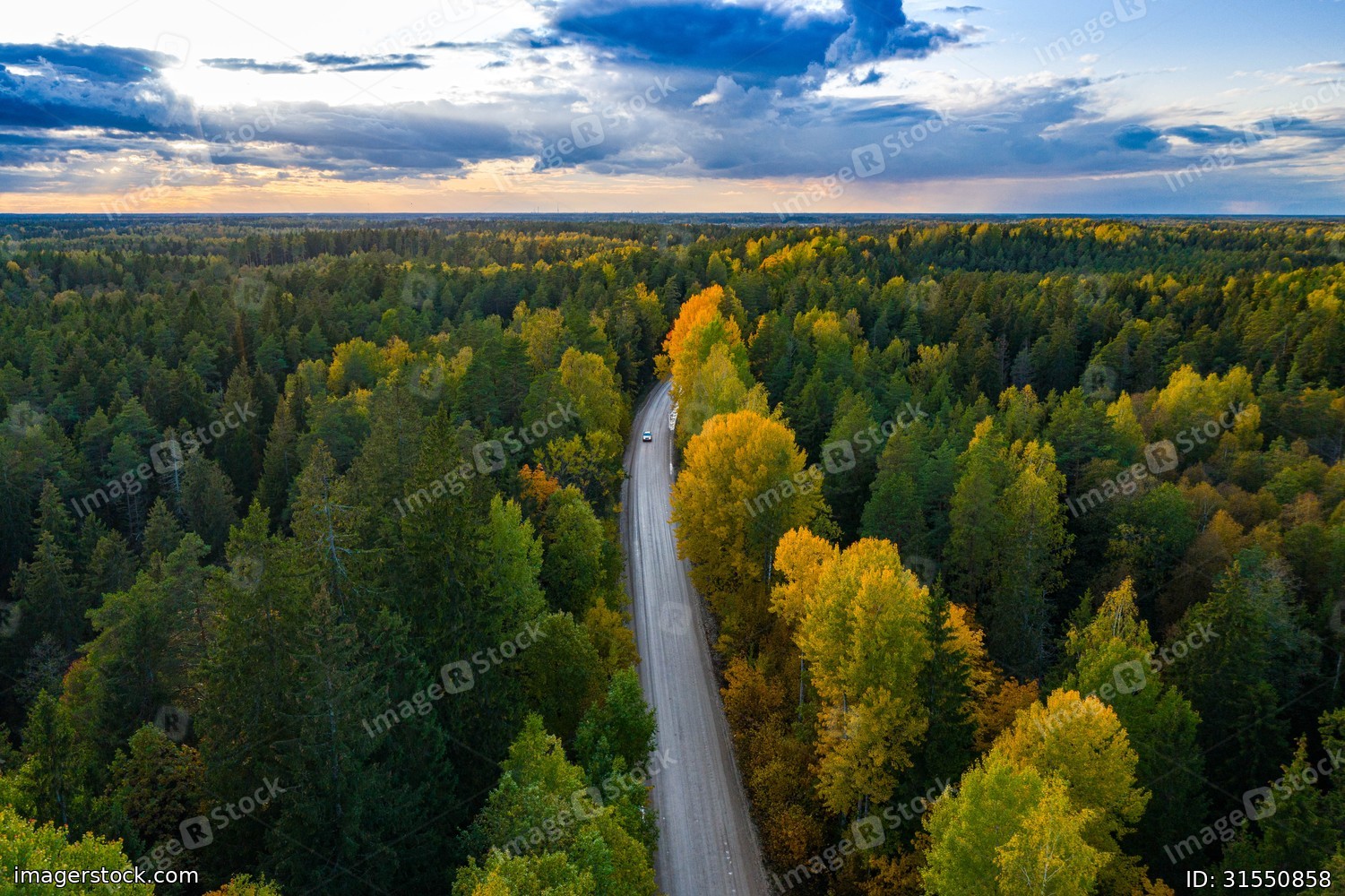 Latvian autumn nature. Forest and road. View from the top.