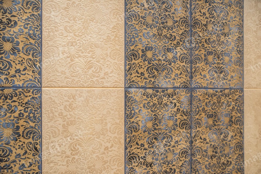 Modern interior bathroom in brown tones. Close-up of wall with patterned tile.