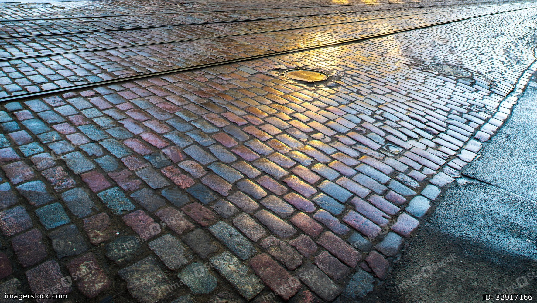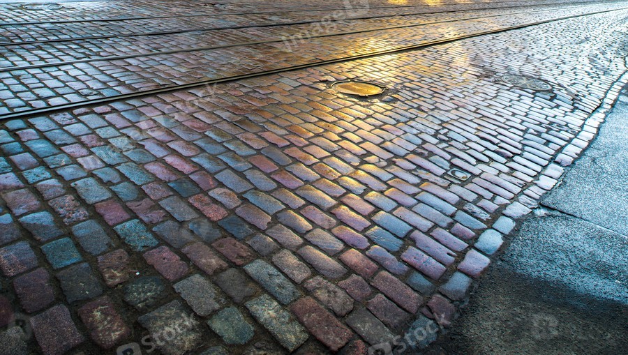 Street in the city, cobbles, granite. City road.