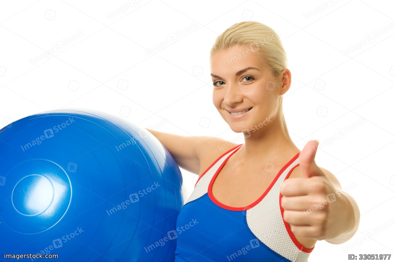 Happy trainer holding a fitness ball