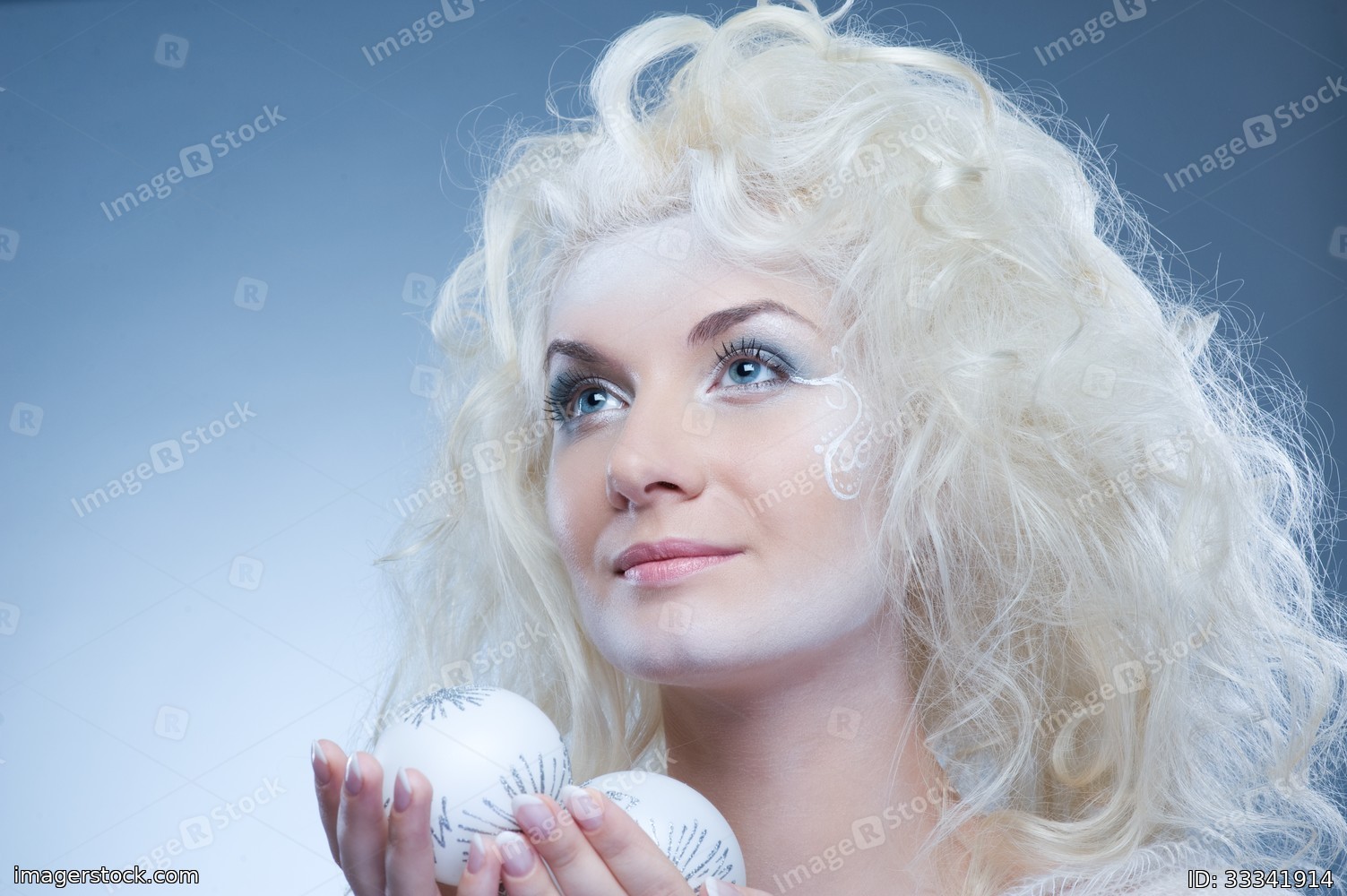 Beautiful snow queen with a christmas ball