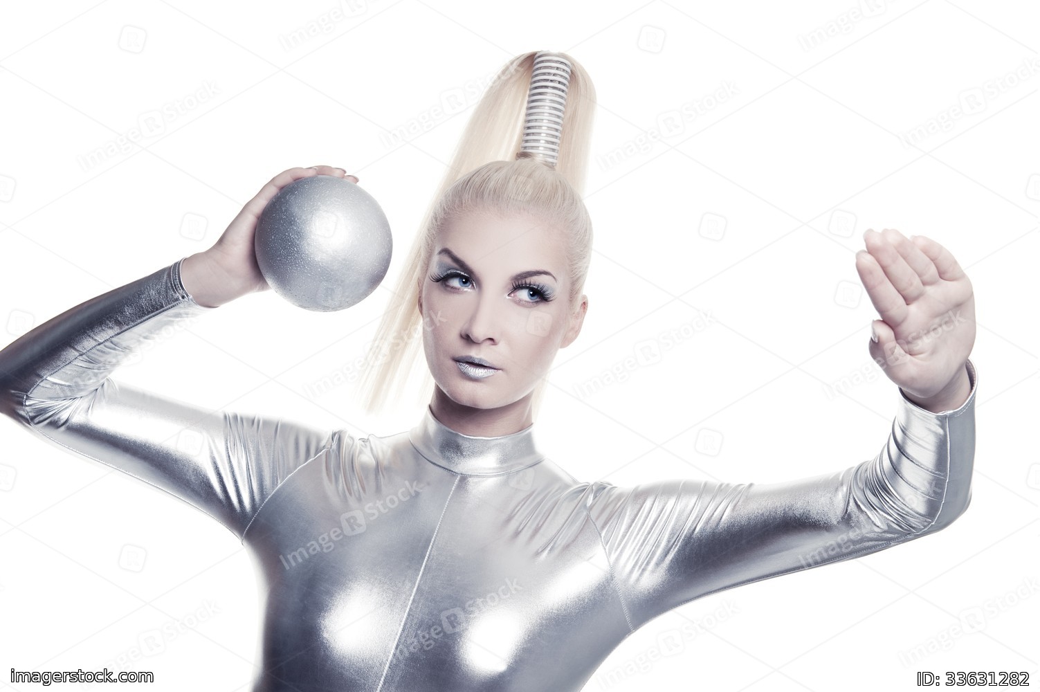 Beautiful cyber woman with silver ball