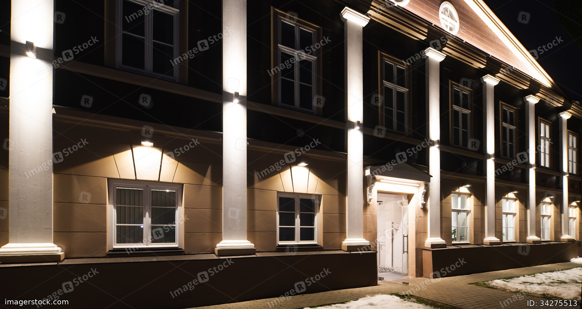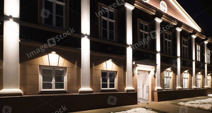 Exterior of illuminated modern building. City architecture.