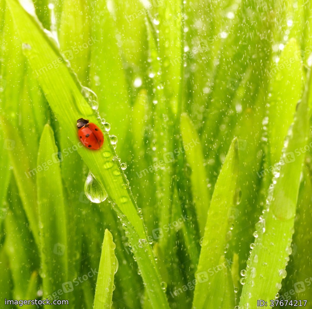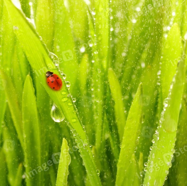 Ladybug sitting on a green grass