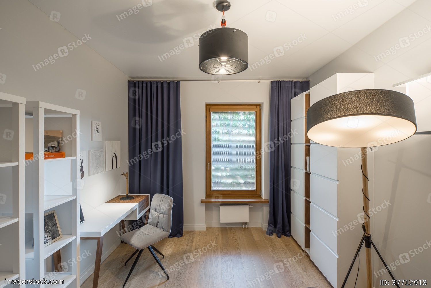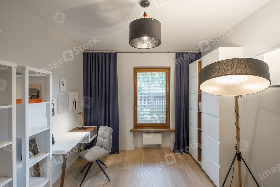 Cabinet, work room, work desk. Interior and design.