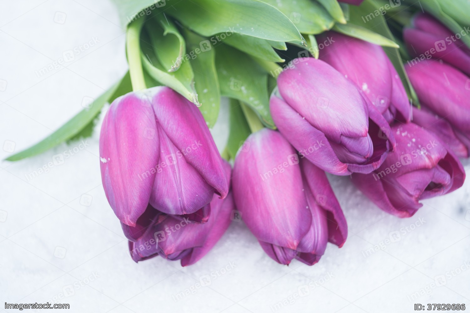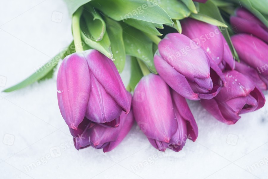 Tulips on the snow in early spring