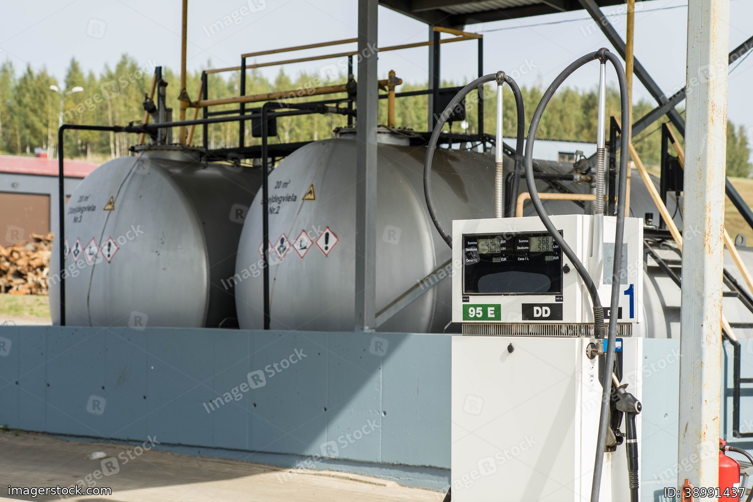 Huge fuel storage tanks. Bio gas station with a gas pump.