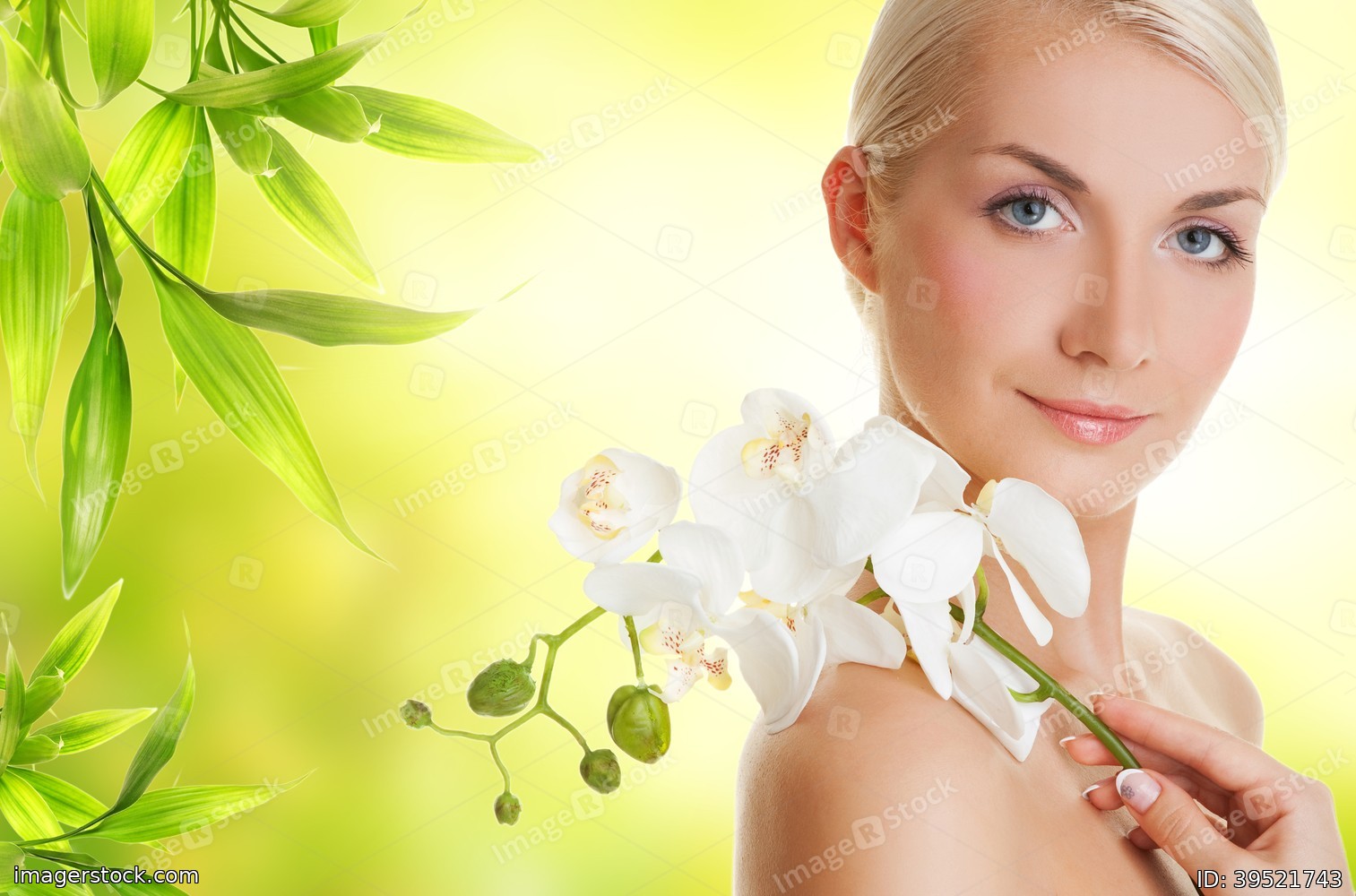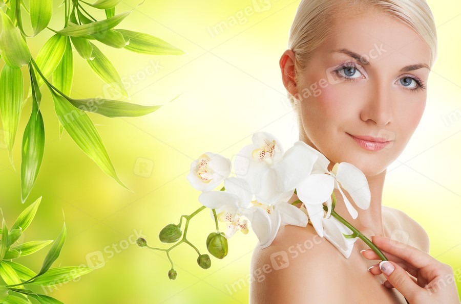 Beautiful young woman with white orchid
