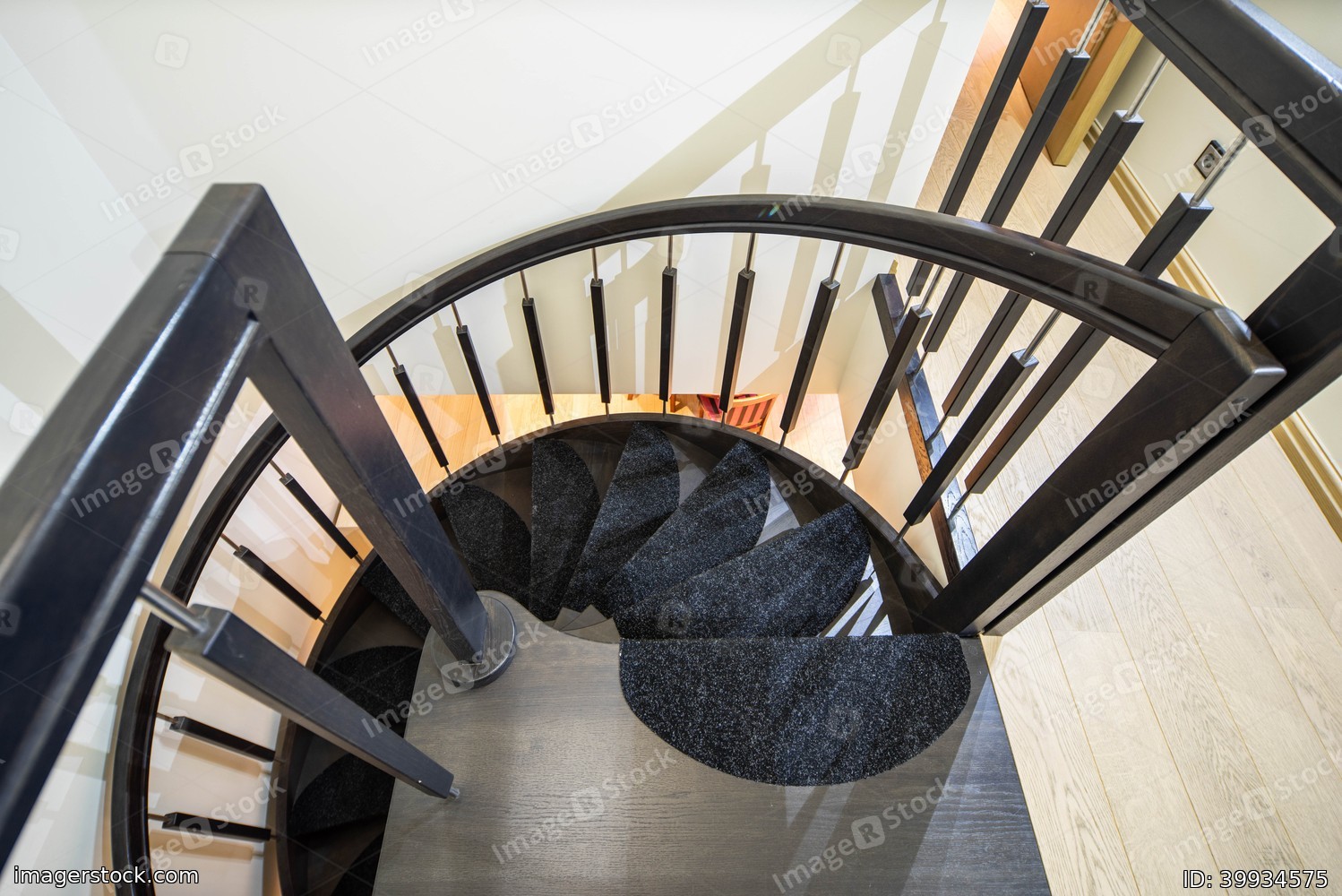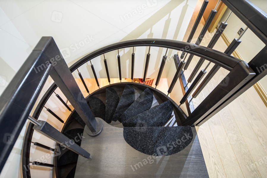 Spiral staircase in private house. Modern interior of apartment.