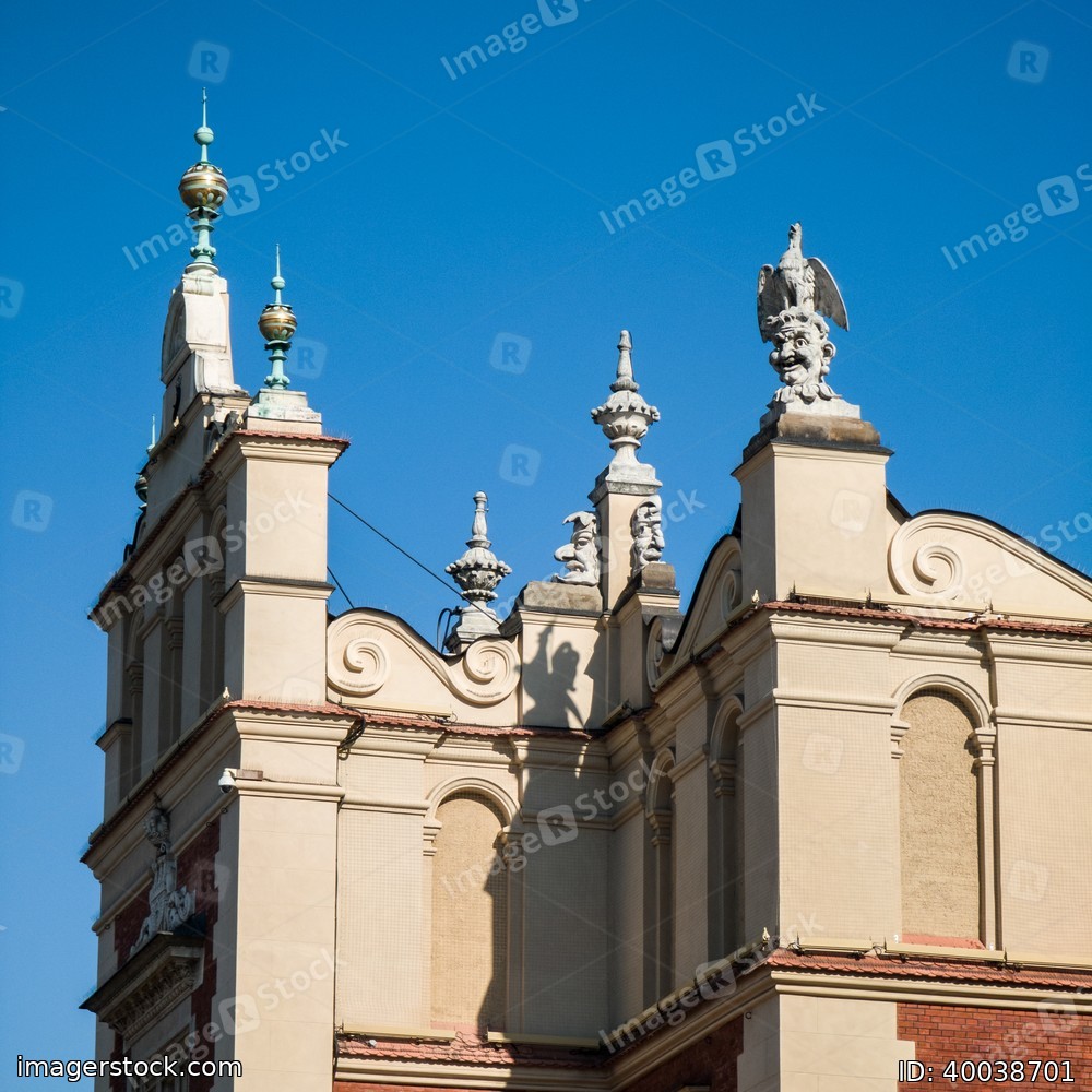 Facade of modern building in Krakow, Poland. Tourism in Europe.