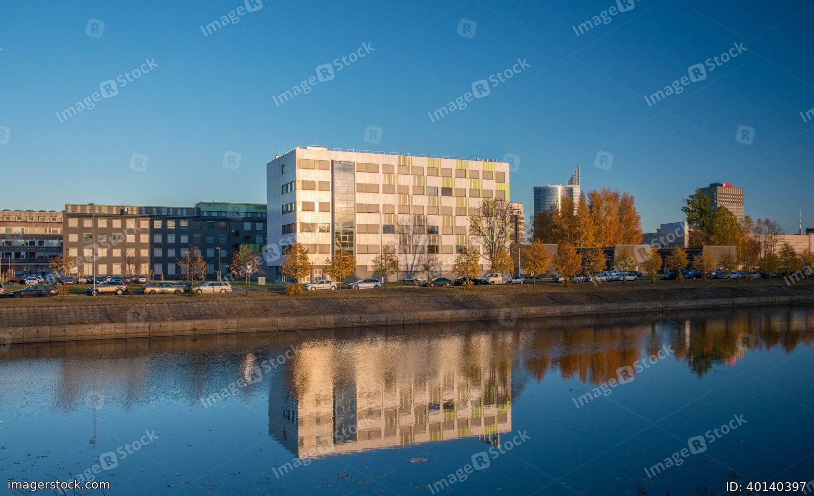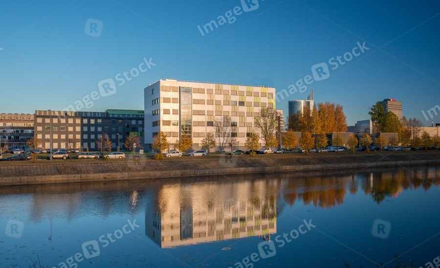 Modern architecture. Office building. Reflection on the water.