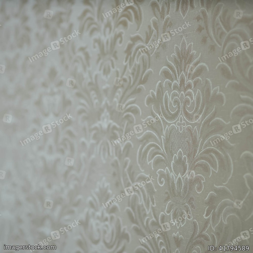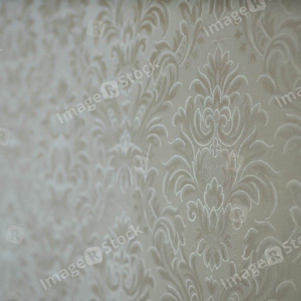 Modern interior of living room. Close-up of wall with patterned wallpaper.