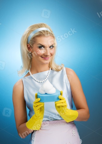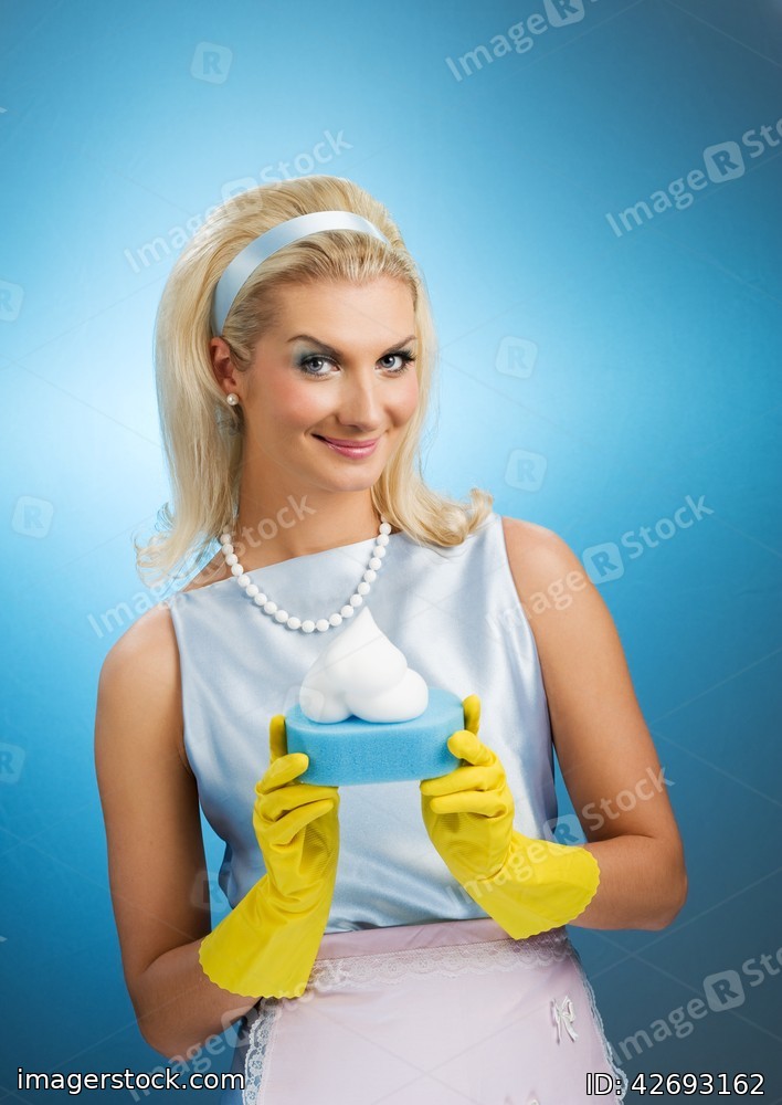 Beautiful happy housewife. Retro portrait