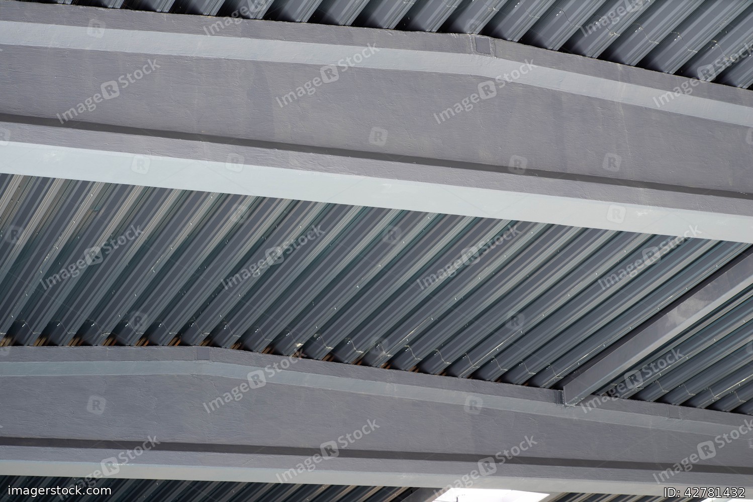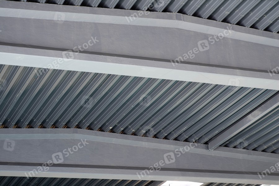Close-up of metal roof inside the room. Industrial hangar