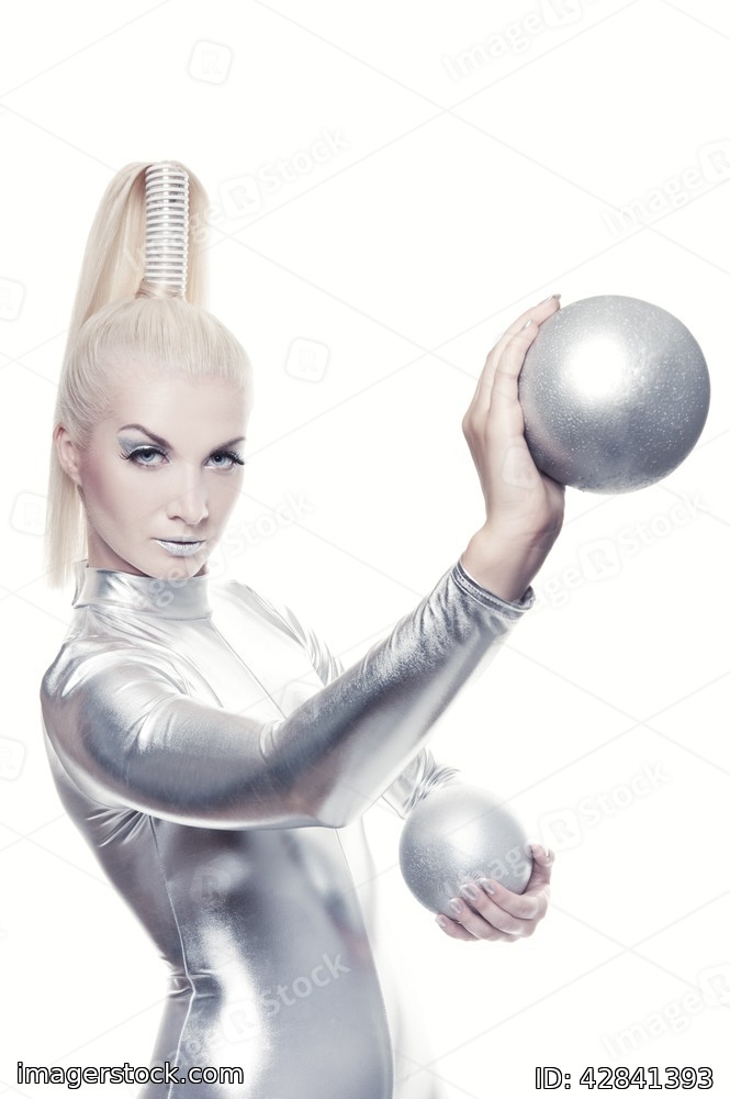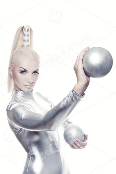 Beautiful cyber woman with silver balls