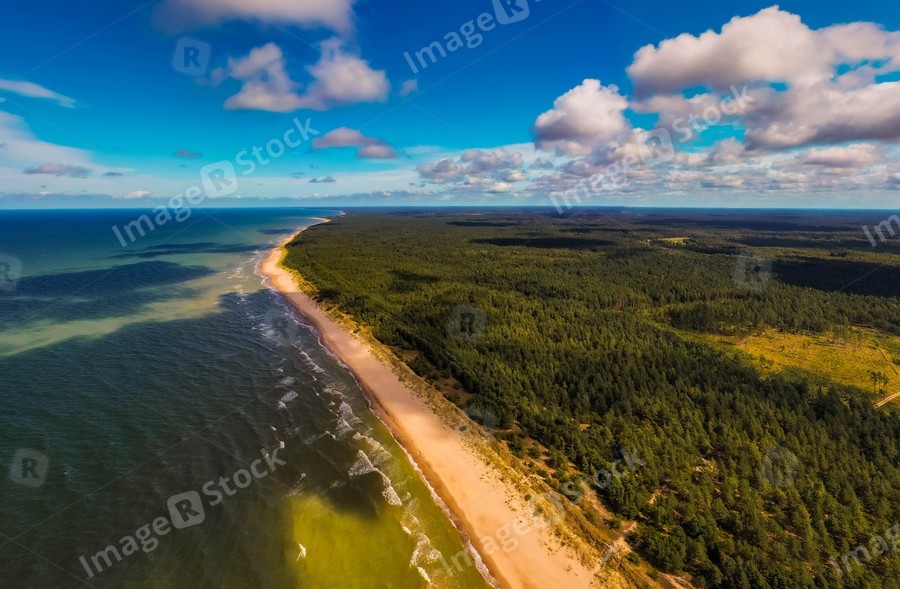 Beautiful landscape. View of coastline. Drone shot of Baltic sea.