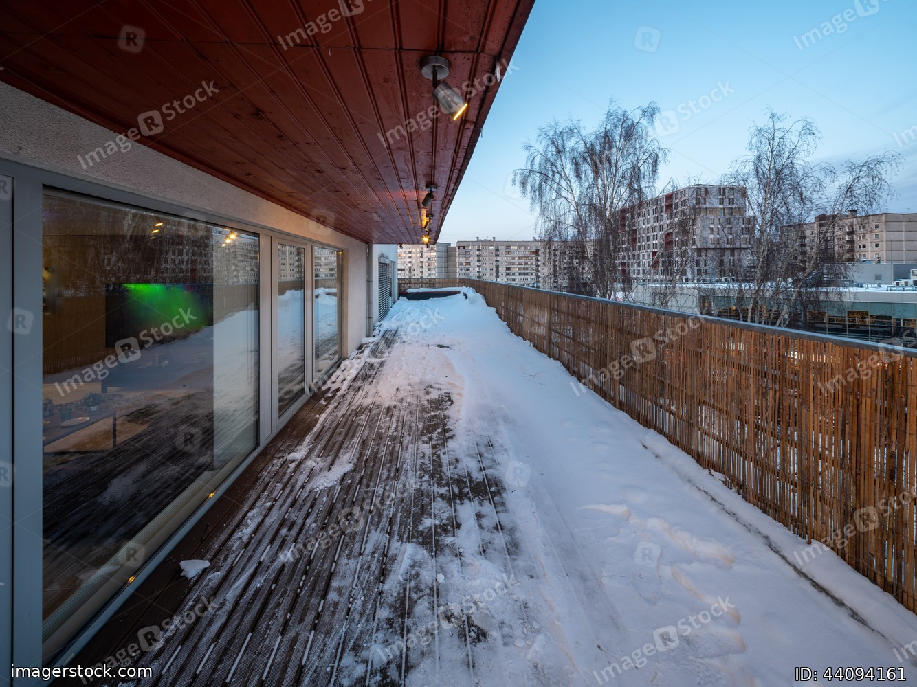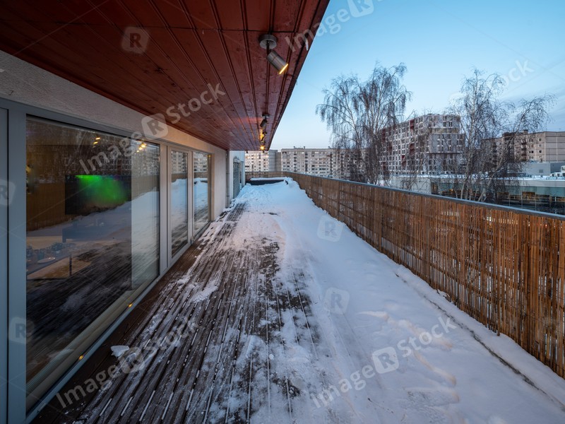 Modern exterior of luxury private house at winter. Cottage.
