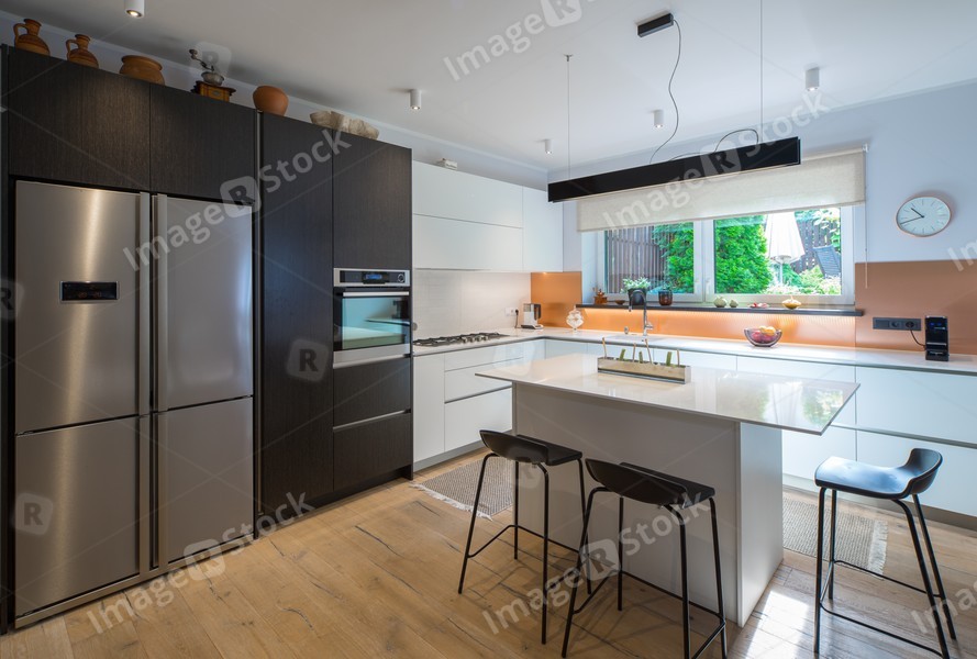 Kitchen in the house. Modern interior. Domestic things.