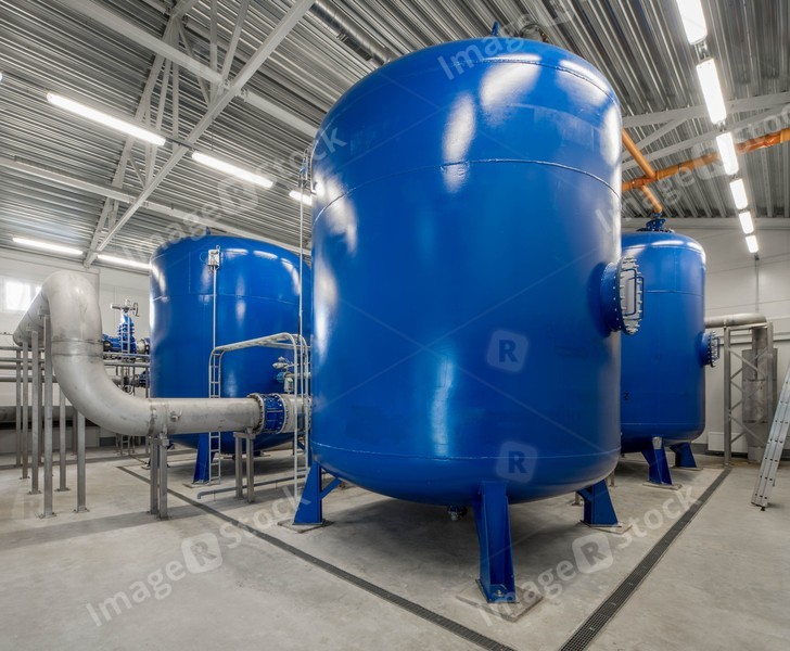 Boiler room. Heating system. Large boiler units. Metal pipe.