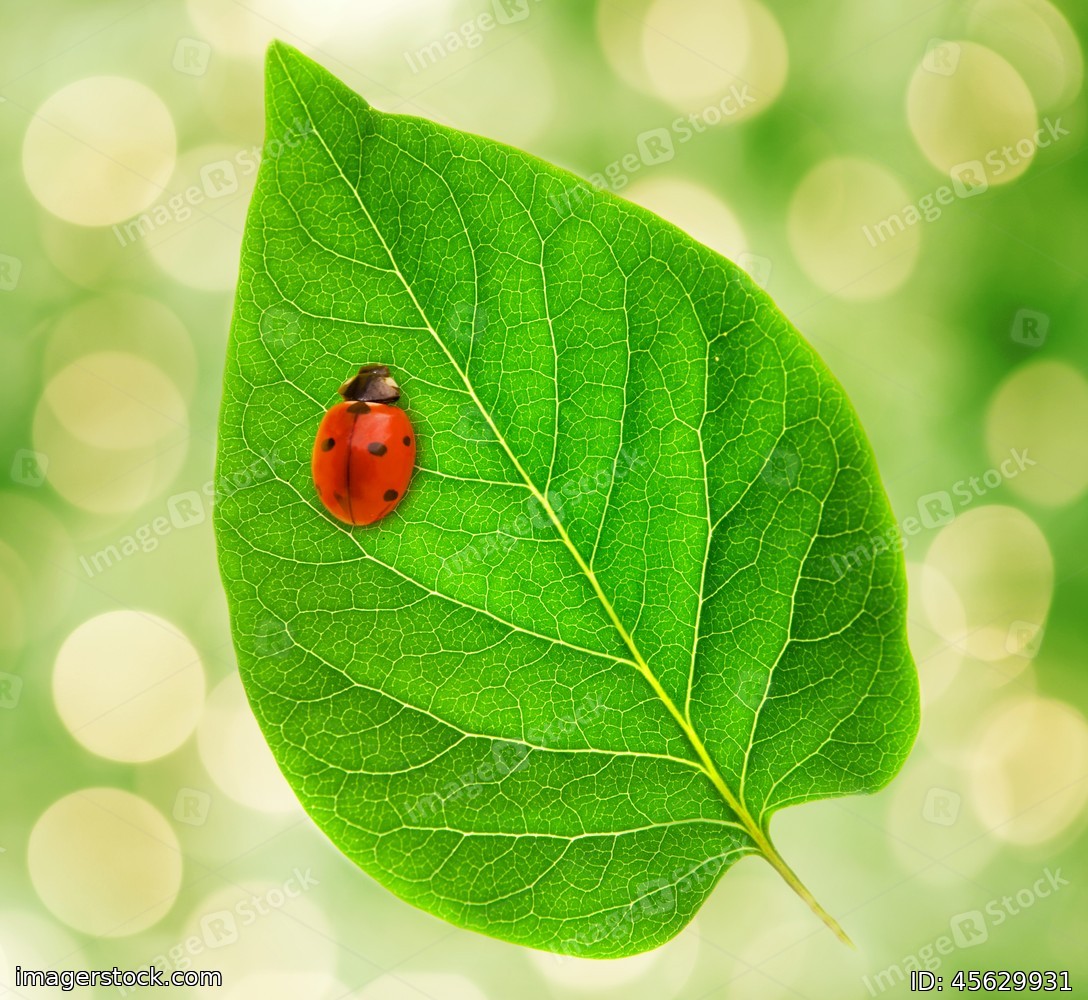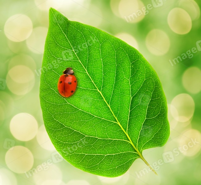 Ladybug sitting on a green leaf