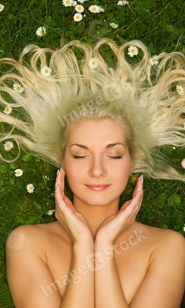 Young woman relaxing on a meadow