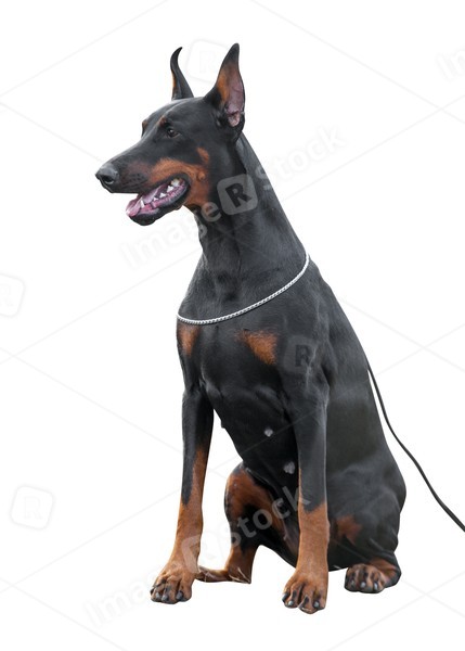 Dobermann dog on white background.