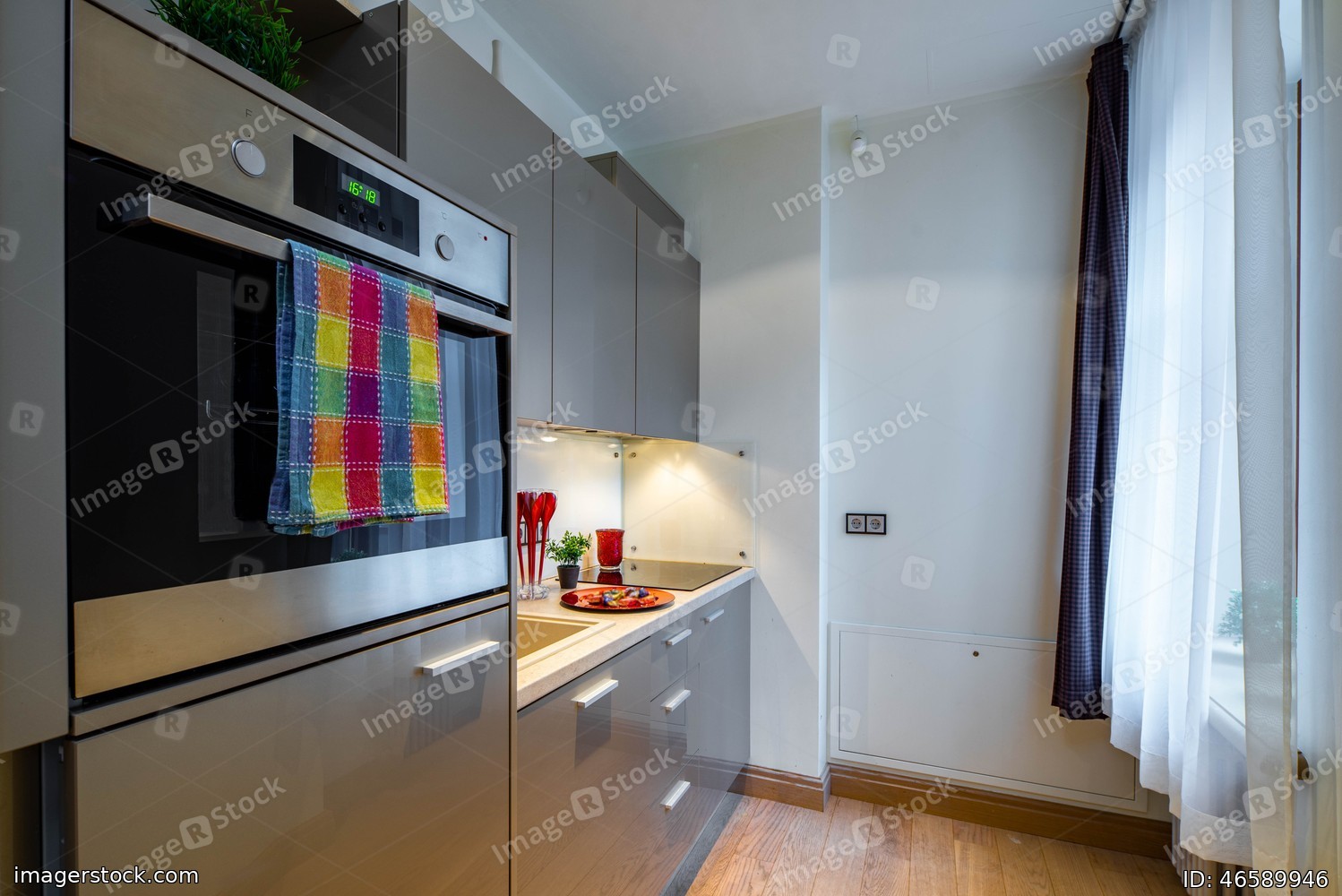 Kitchen interior in modern apartment. Kitchen set.