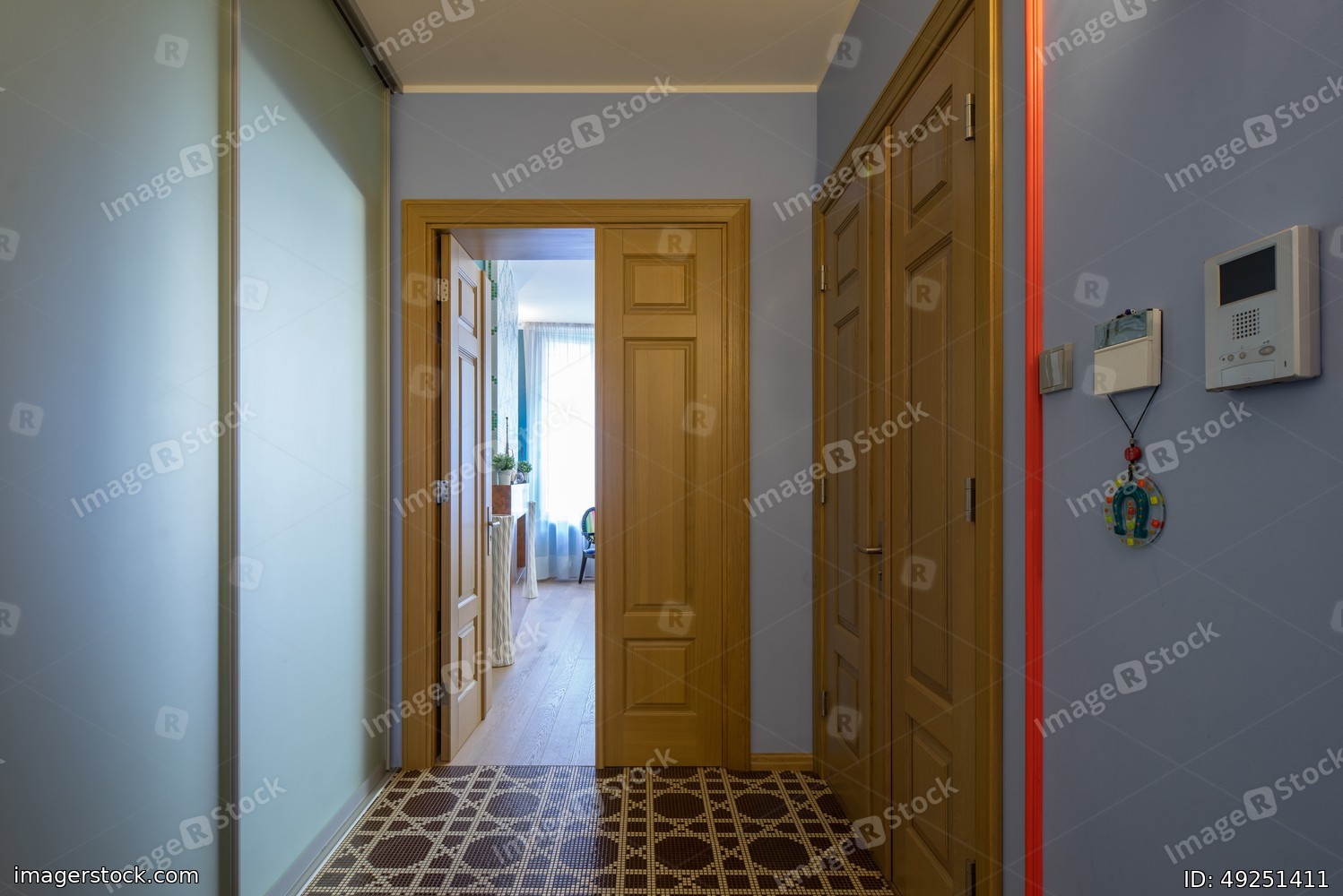 Modern interior of hallway. Wooden doors.