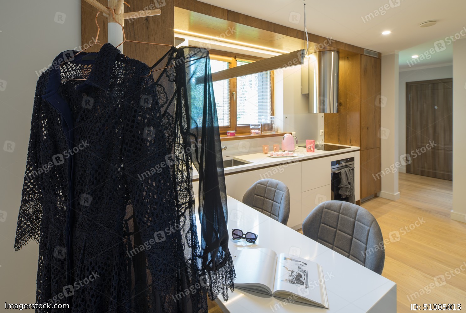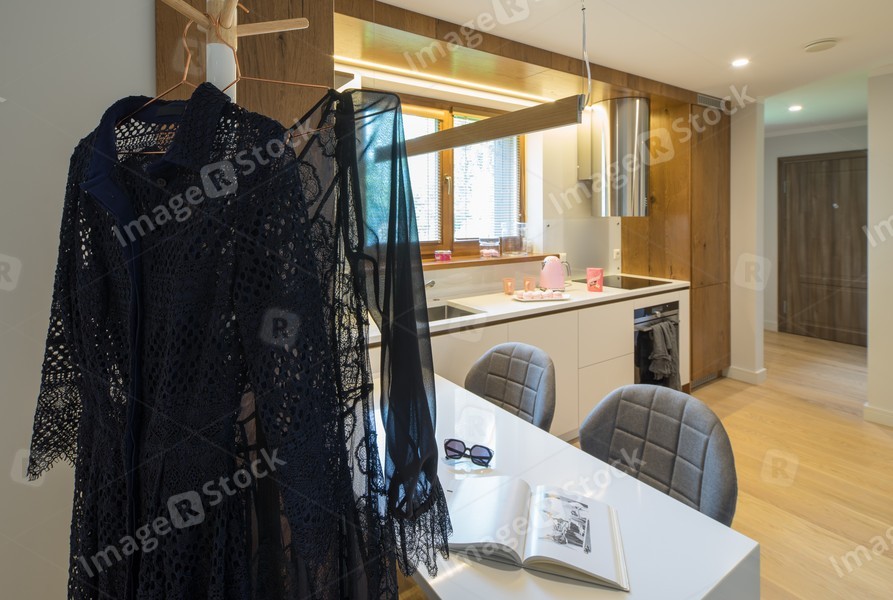 Kitchen studio interior. Modern kitchen in the house.