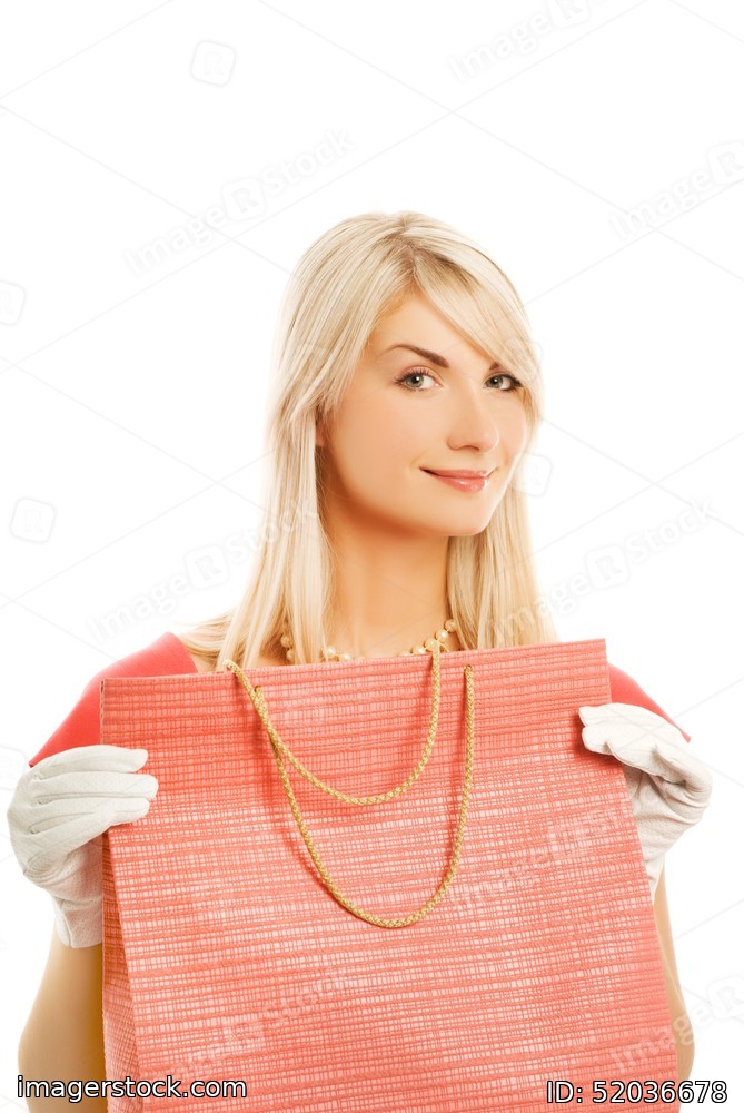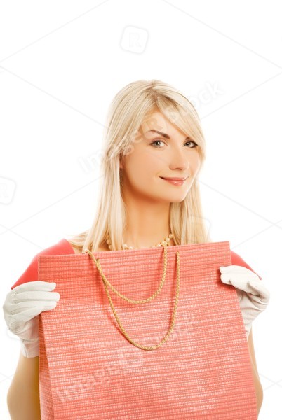 Beautiful young woman with a bag. Isolated on white background