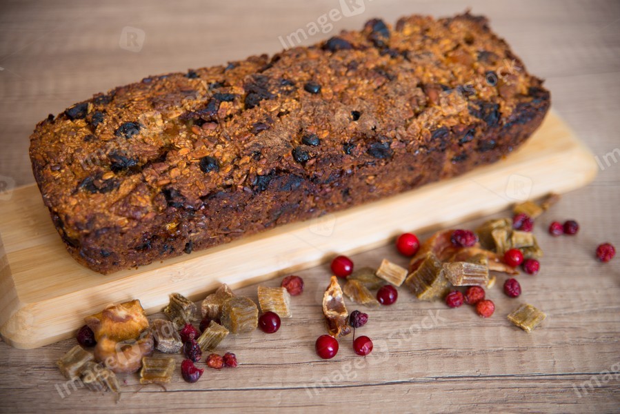 Homemade fruit bread with cosy winter decorations