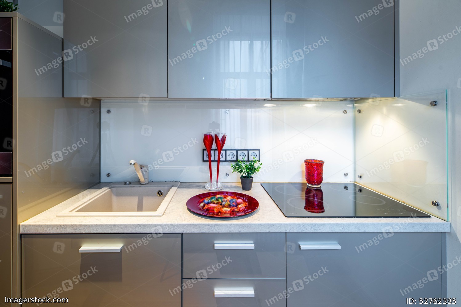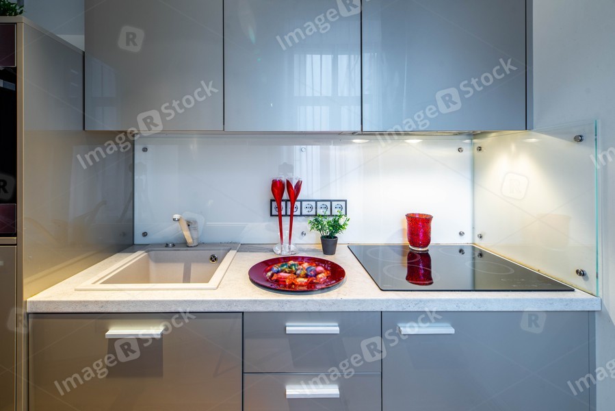 Kitchen interior in modern apartment. Kitchen set.