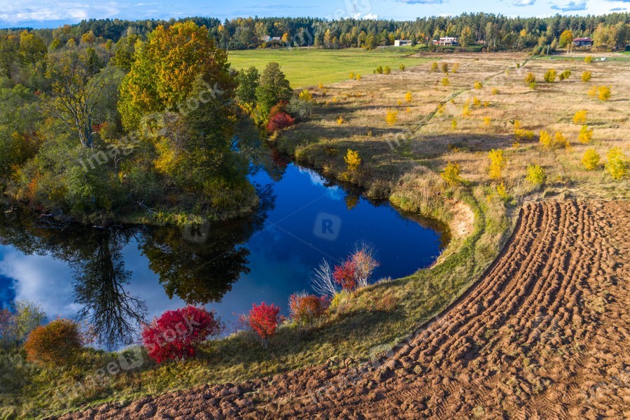 Latvian autumn nature. VIew from the top. Forest and river Jugla.