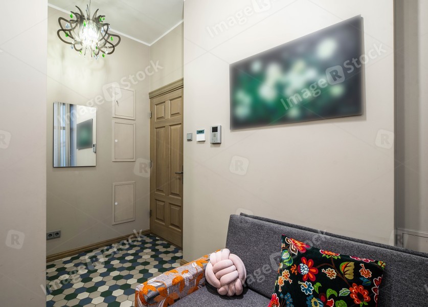 Modern interior of light studio apartment. Living room.