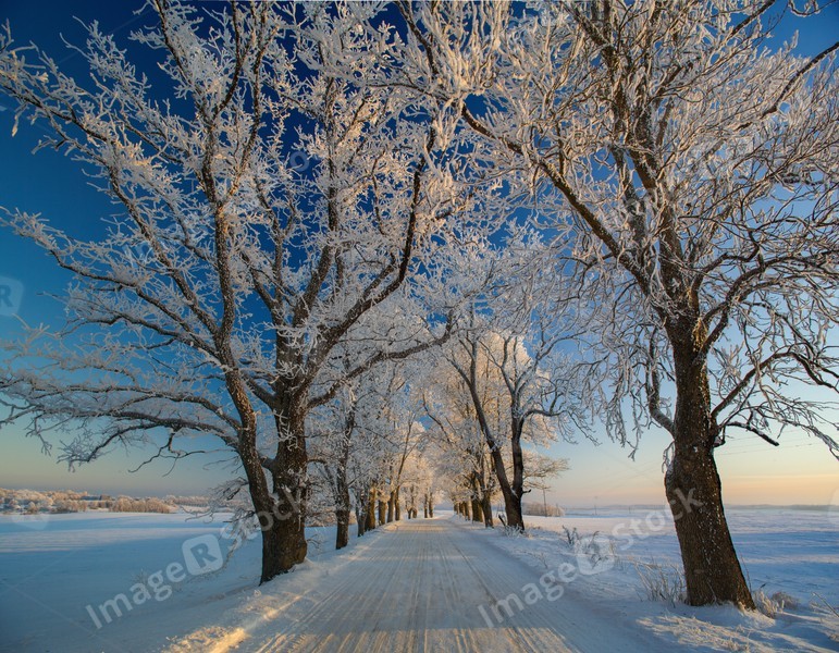 Winter landscapes, road, snow-covered trees,