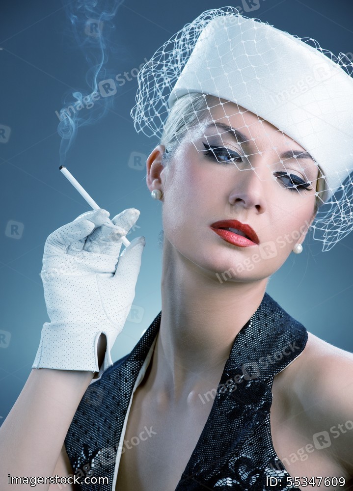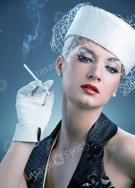 Beautiful smoking woman. Retro portrait