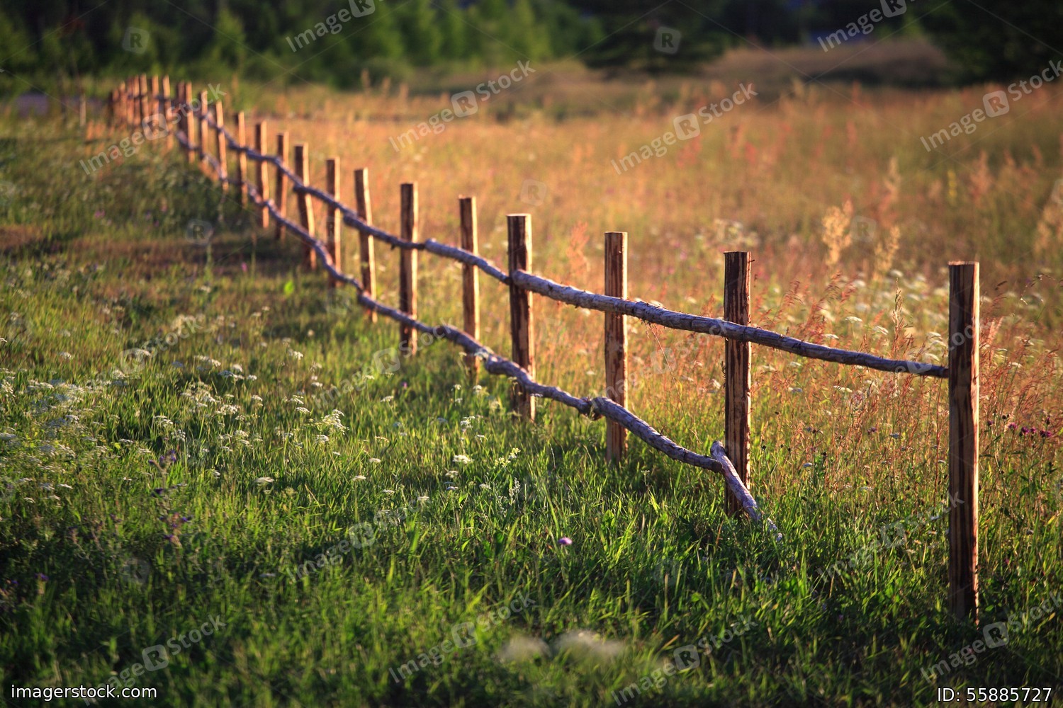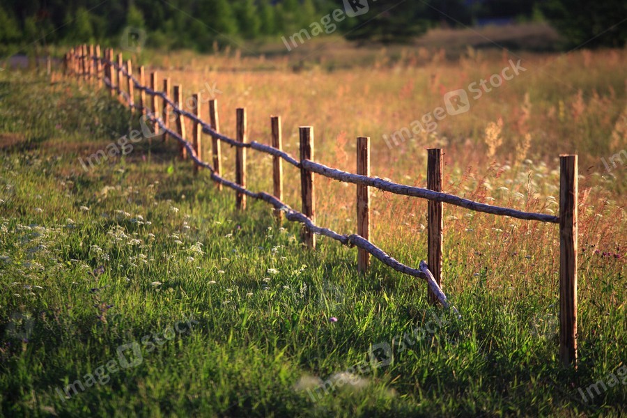 Wooden fence from rural animals. Summer landscape.