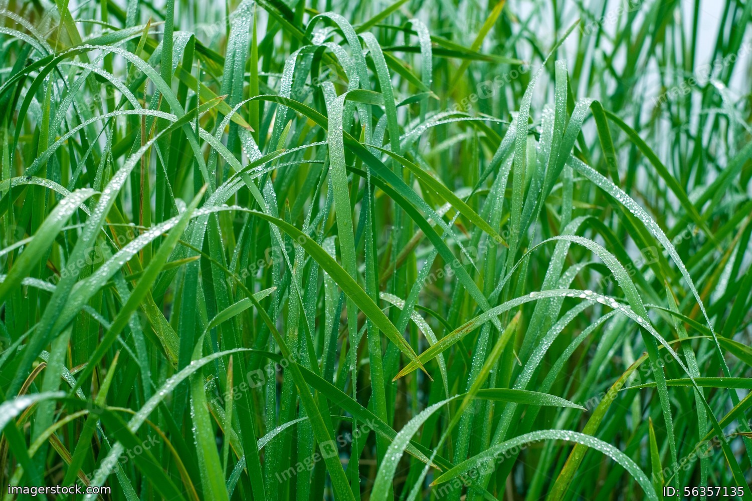 Green grass in the morning dew. Macro. Summer.