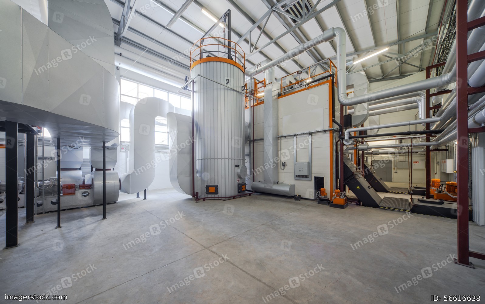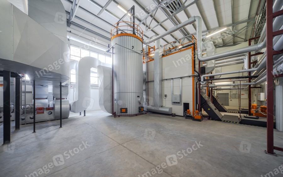 Modern boiler room on the wooden chips.