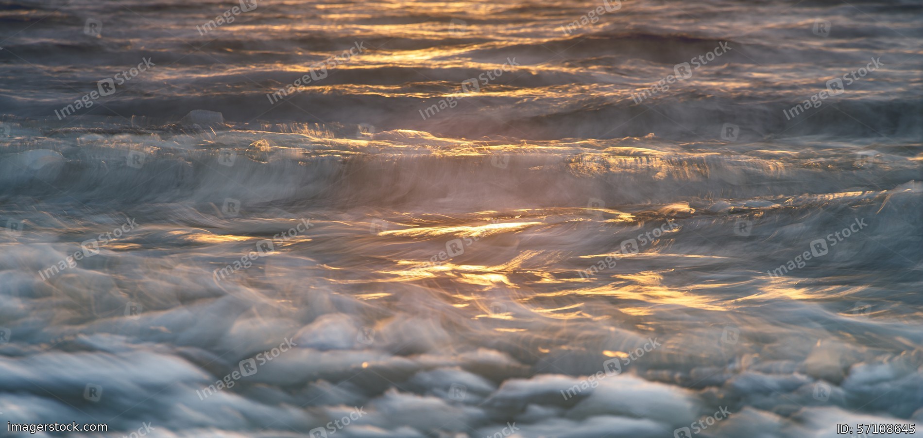 Close-up of snow and ice on surface of Baltic sea at winter.