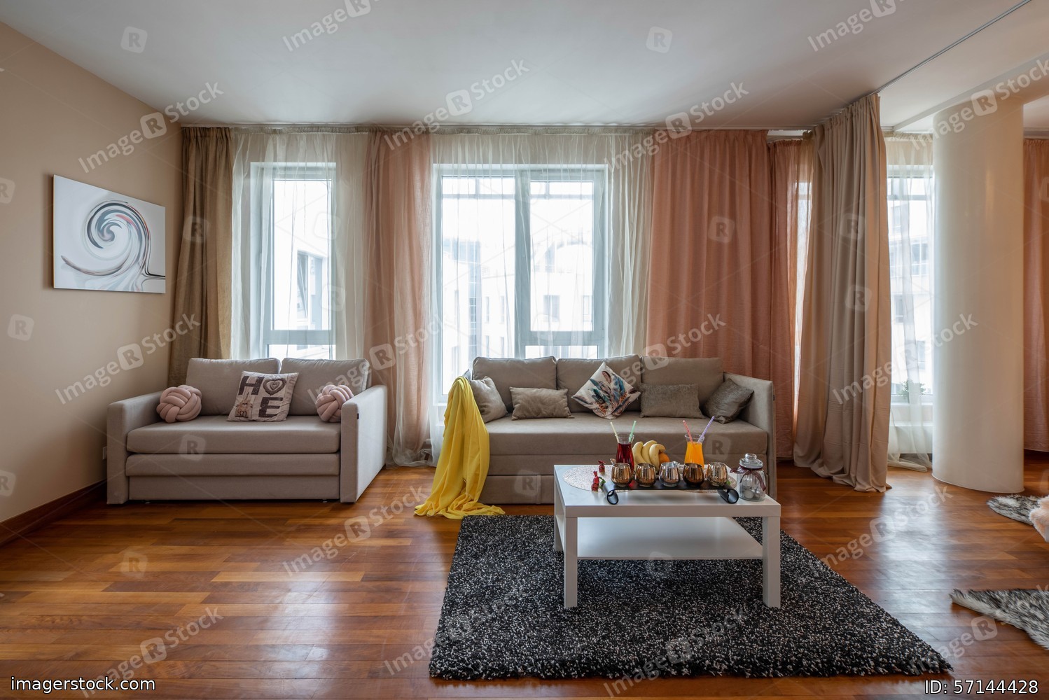 Modern interior of living room. Cozy sofas.