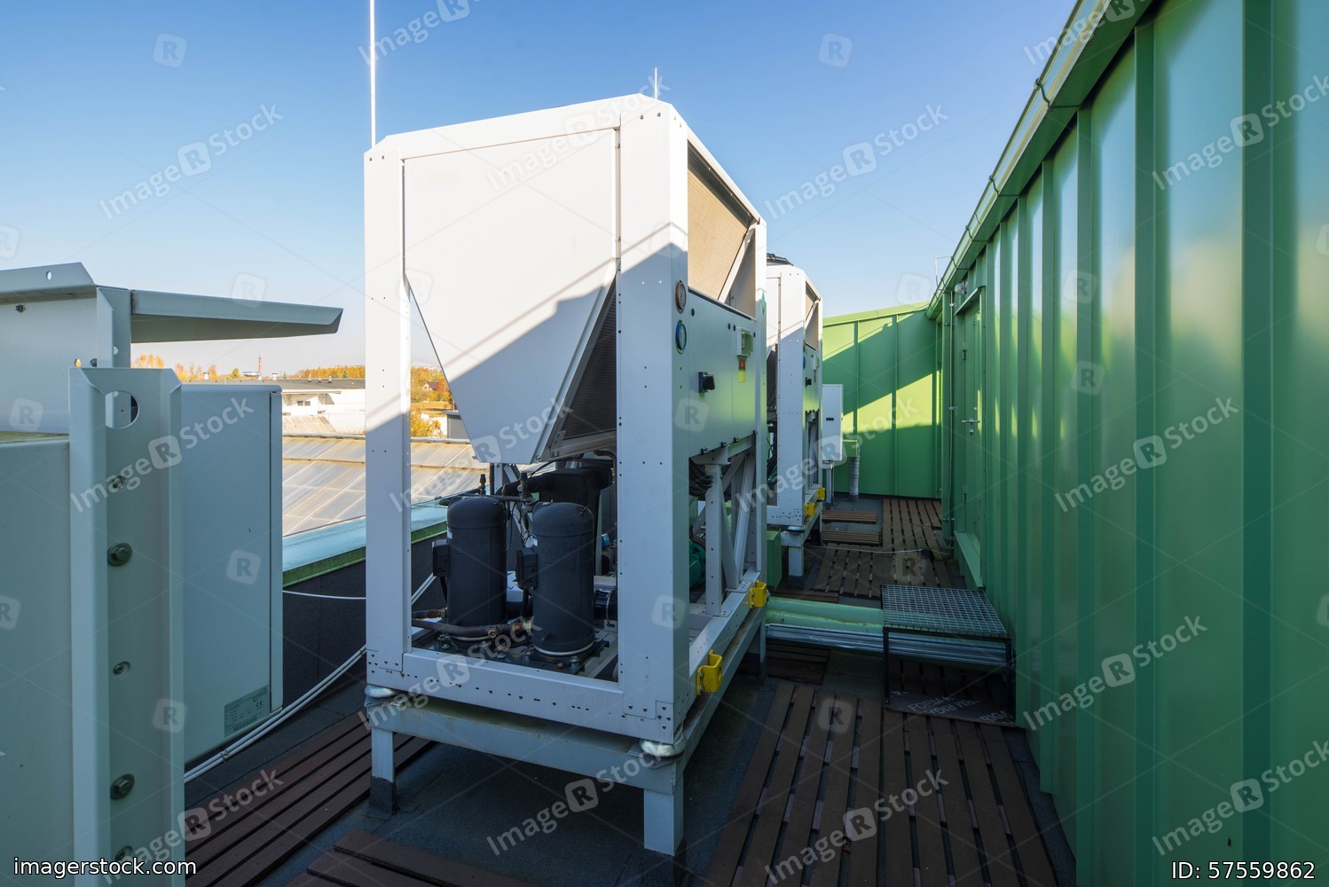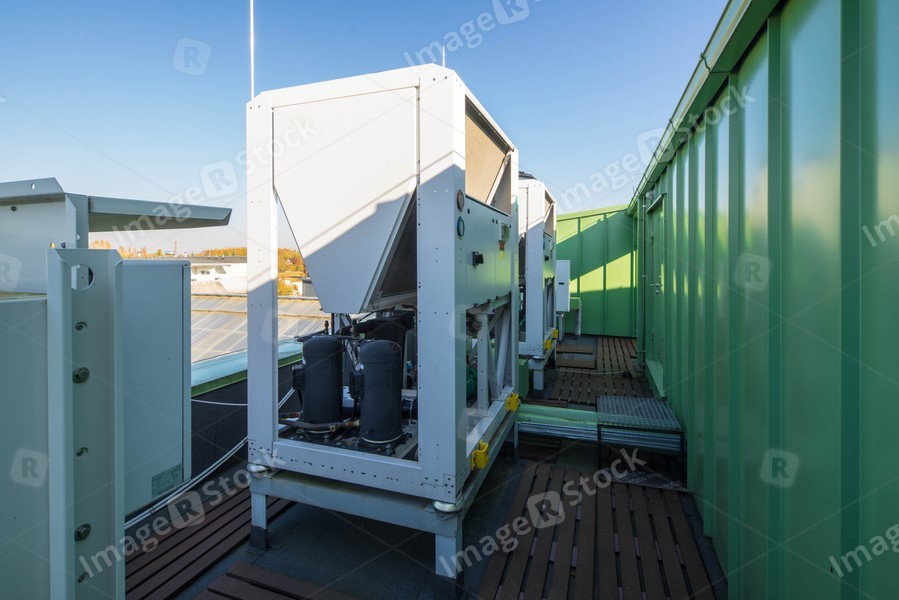 Ventilation system outside. Blue sky. Sunny day.