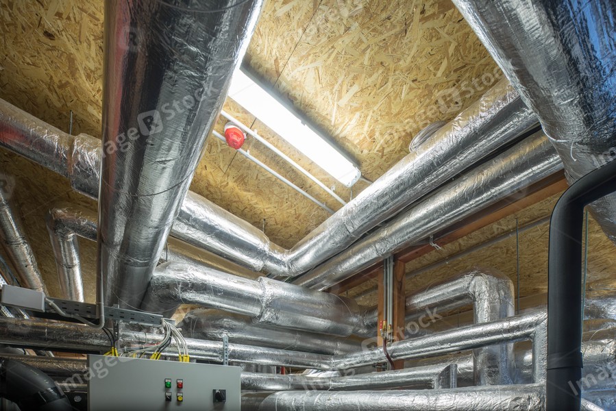 Ventilation system indoors. System of pipes.