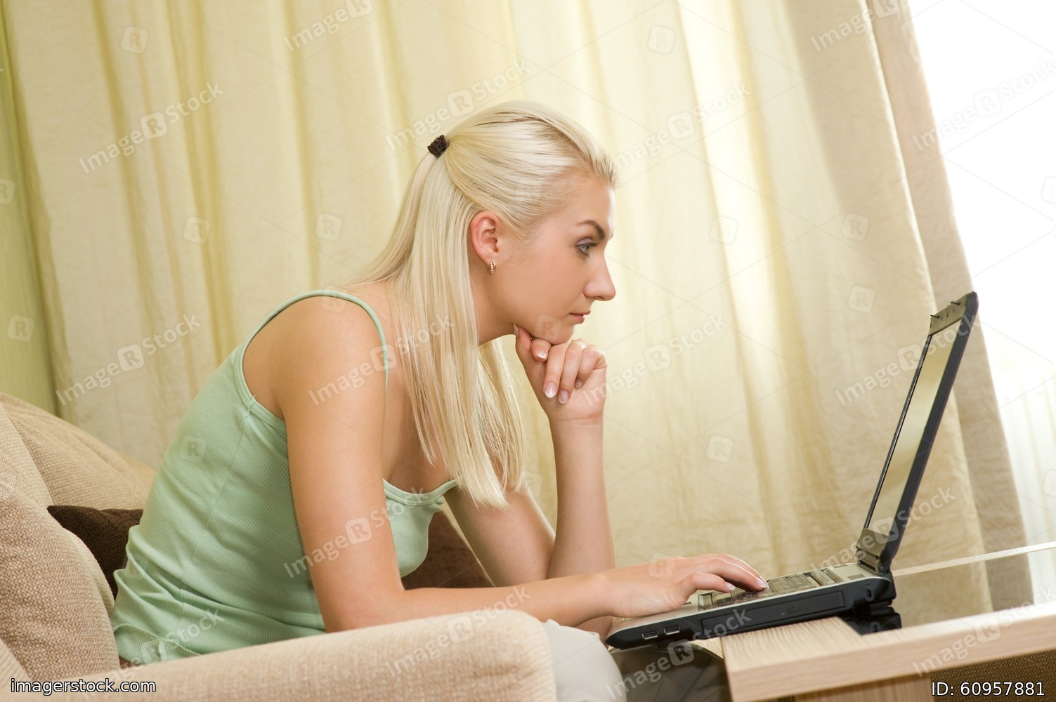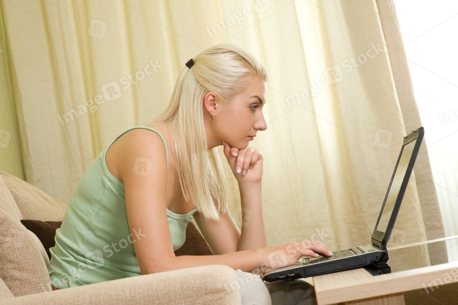 Young woman working on a laptop at home