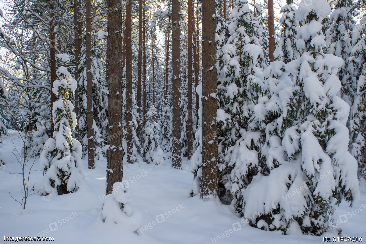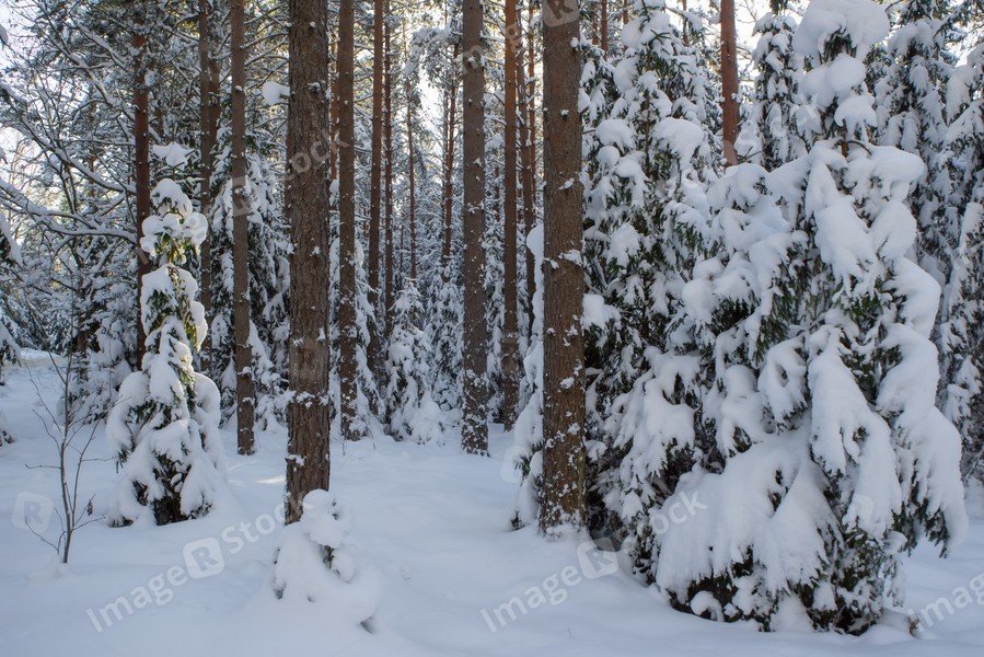 Scenic landscape of winter forest. Trees covered by snow.